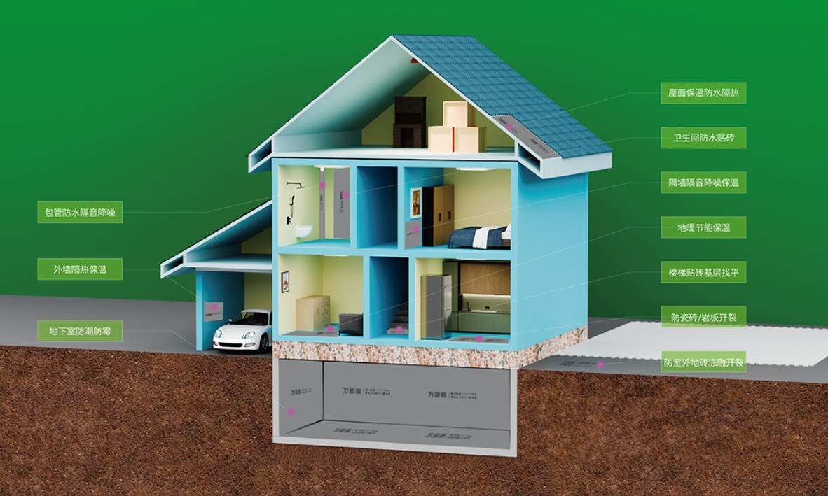 适用于建筑物屋顶、内外墙及卫生间的防水防潮、墙地面的隔热保温、降噪隔音,以及室内管道包裹、隔断、墙地面找平、吊顶等多种场合。